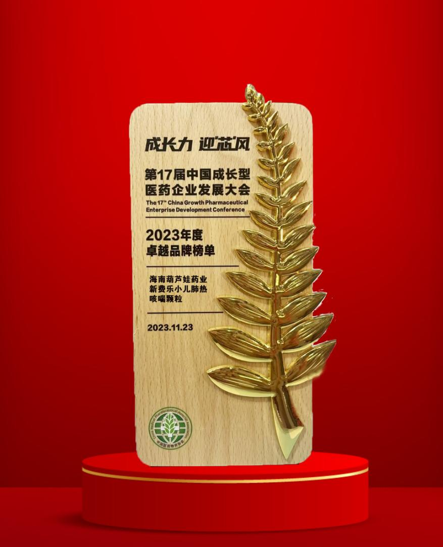 11月22日至25日,由中国医药物资协会和厦门市人民政府主办的第17届中国成长型医药企业发展大会在厦门拉开帷幕。会上,DG视讯药业集团党委书记、董事长刘景萍获得“金叶奖·2023年度医药行业风云人物奖”,集团旗下产品新费乐®小儿肺热咳喘颗粒荣膺“2023年度卓越品牌奖”。